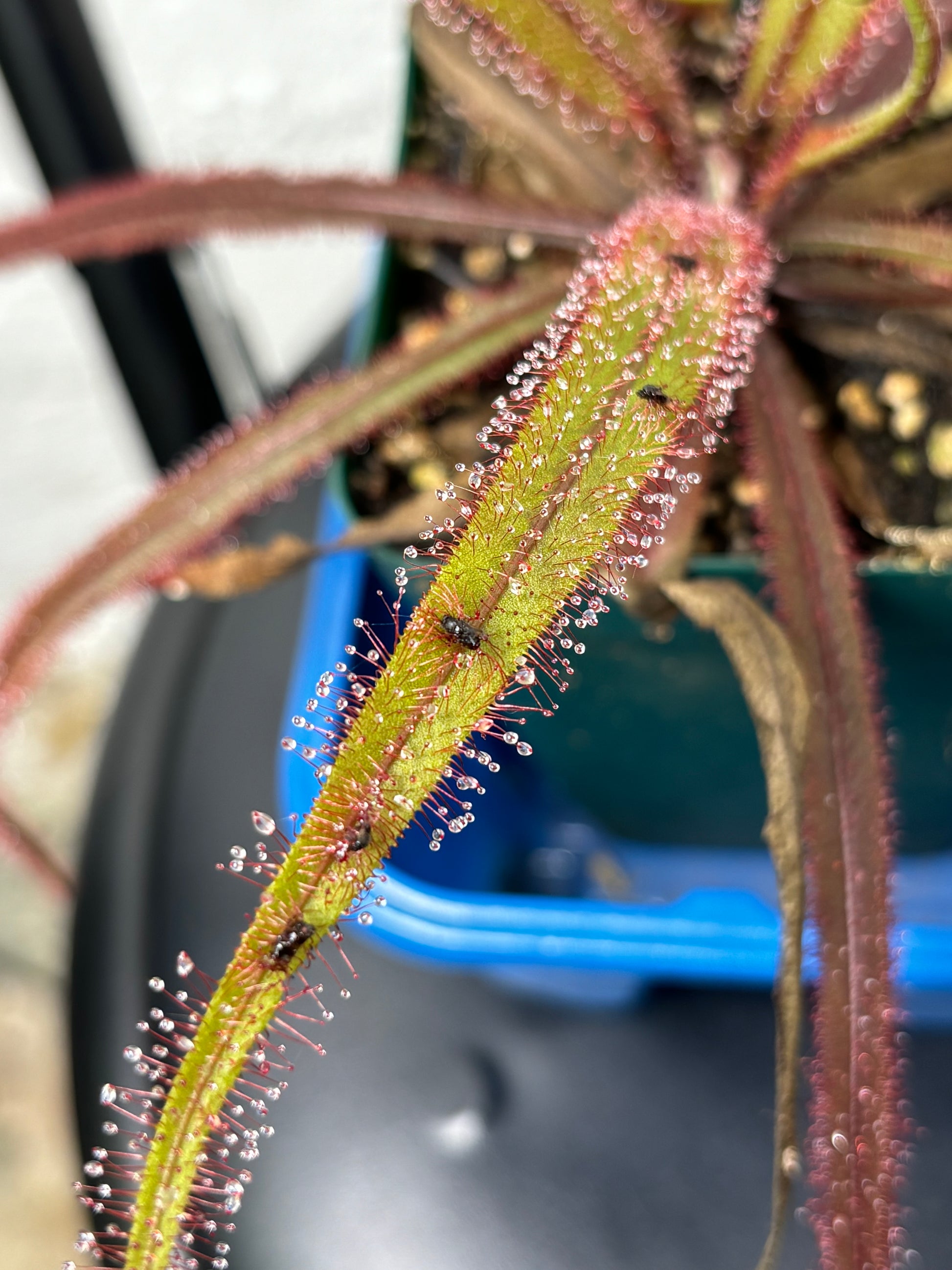 FERTILIZATION: We recommend only using MAXSEA brand fertilizer for all carnivorous plants, as tests have shown these sensitive plants respond best to this brand alone. The plants will naturally catch flying insects like gnats and house flies, and these can be ‘fed’ to the plant by simply ‘sticking’ them to the tentacles! Fertilize 1 every 2 weeks in spring and summer, and once a month in winter.